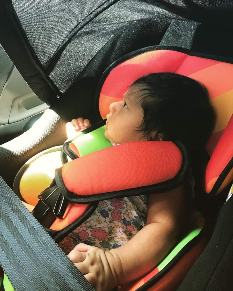 Lastly, feast your eyes on Zoe snugly buckled in, a proud alum of Pinto Rosario Hospital, car seat enthusiast and our little Ambassador for car safety.